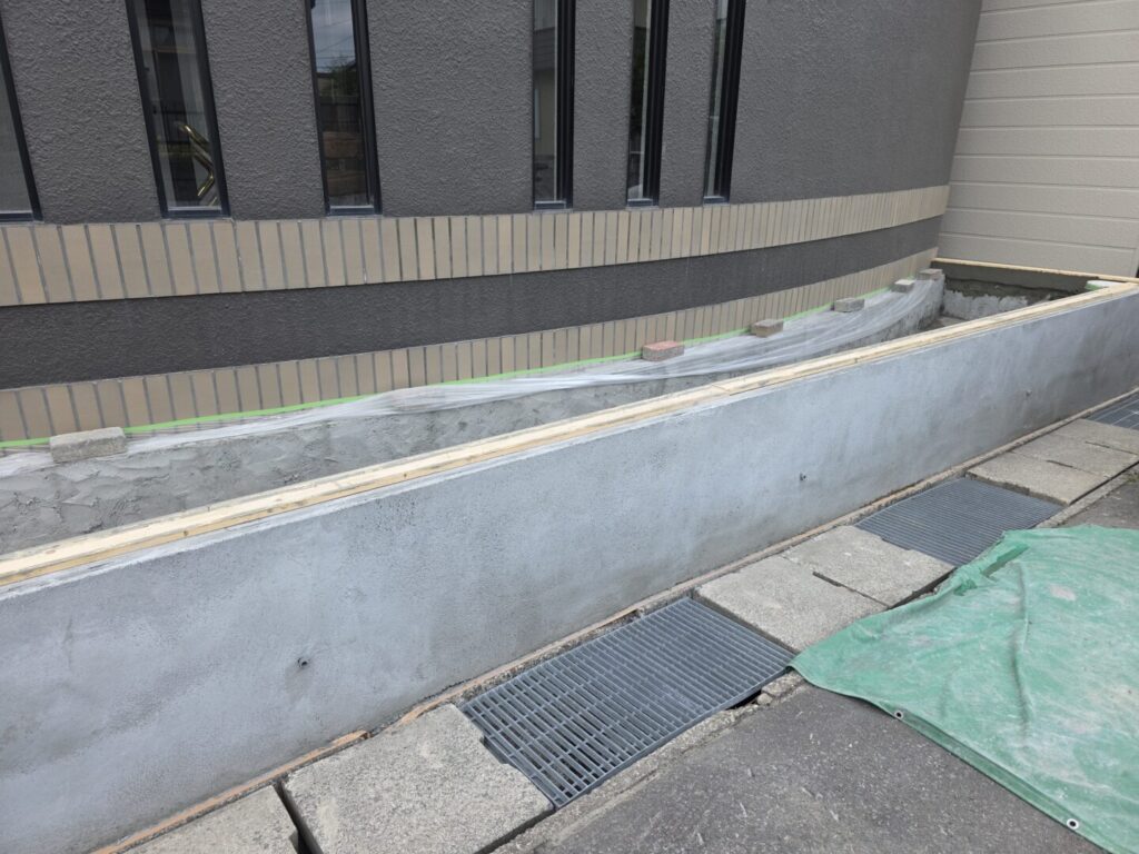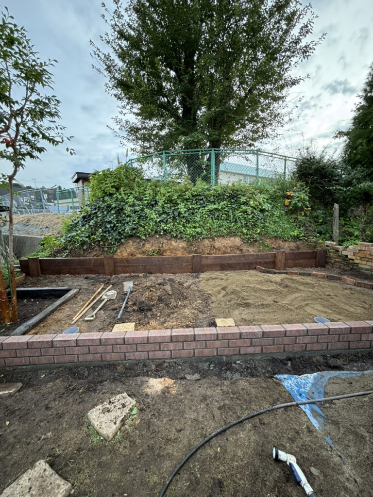 まずは、隣地の土が流れてこないように土留めをするのですが、